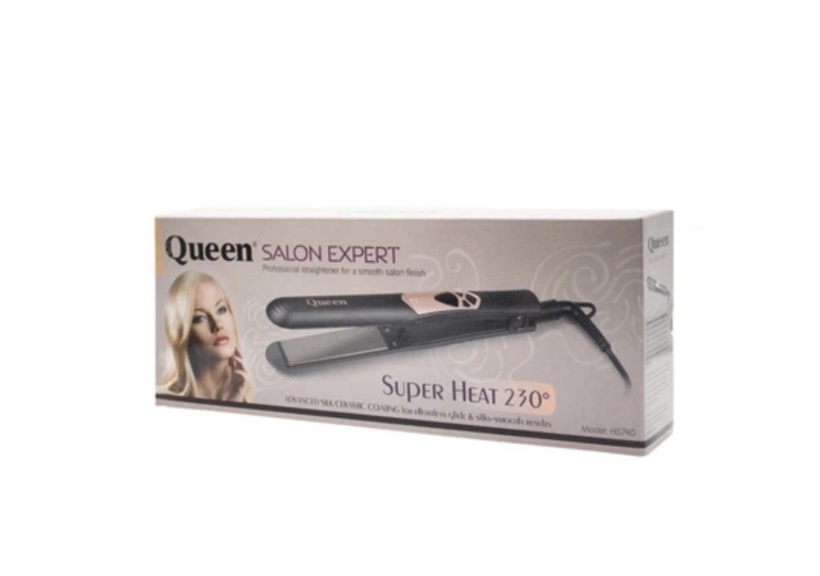 اتو مو کویین مدل HS740 دستگاهی با صفحات روکش سرامیکی برای صاف کردن موهاست. عرض صفحات اتو مو 30 میلیمتر بوده و برای موهای بلند و متوسط مناسب است. سرامیکی بودن این صفحات باعث میشود حرارت به شکل یکنواختی در همهی قسمتها پخش شود و به مو آسیبی وارد نشود.